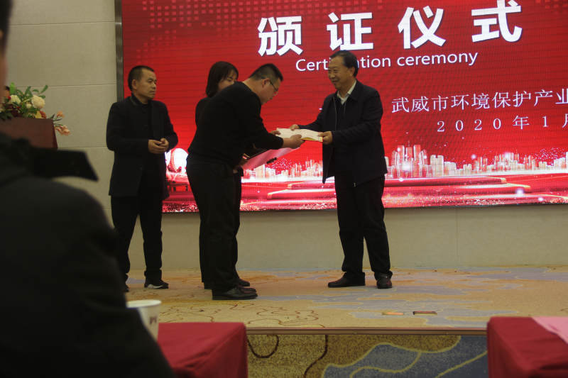 會上,武威市生態(tài)環(huán)境綜合行政執(zhí)法隊隊長袁得功為會員單位頒發(fā)了牌證。